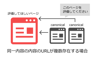 canonicalタグを設定することで、評価の分散を防ぎ、正しいページが上位表示されるように調整します。